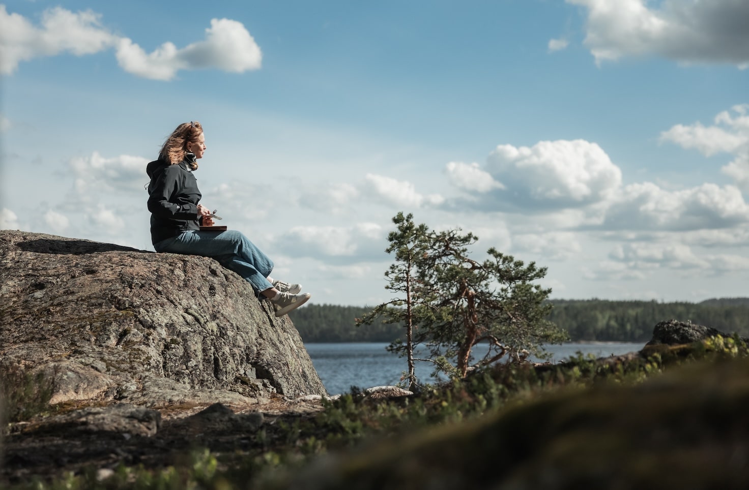 In the afternoon, I collect branches in the forest to make a traditional Finnish vihta (a birch whisk used in the sauna). Then I heat the wood-burning sauna, letting the warmth build gradually. I spend hours moving between the intense, enveloping heat and the cool, clear lake water. There is no rush, no schedule, just deep restoration. And then I repeat this rhythm the next day. And the next. After a week like this, something shifts. The nervous system resets. Sleep deepens. Creativity returns.